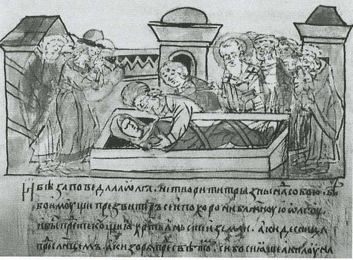 Keywords: Olga of Kiev's death (Radzivill chronicle).jpg Radzivill chronicle Успение княгини Ольги иниатю а Радзивиловской летописи http //www mmedia nsu ru/art/CGI/BROKER EXE EL 977+MODE VIEW+PARAM ZZ_INTERFACE century 15 Author PD-Art Details of Radzivill Chronicle Olga of Kiev in medieval miniatures 969 in Russia 969 deaths |