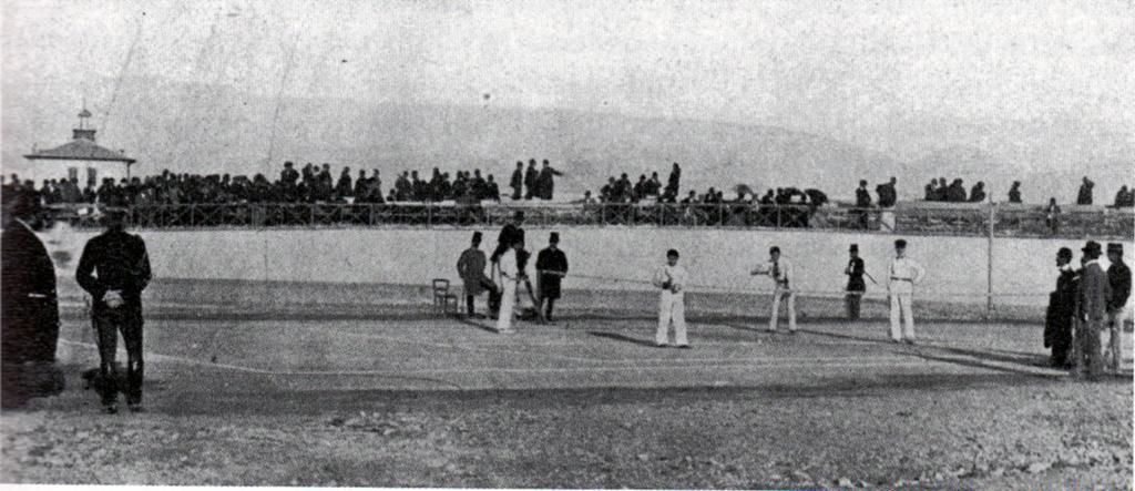 Keywords: Olympics 1896, Tennis, men doubles final.jpg en Olympic Games 1896 Tennis doubles final Original desciption on the picture Eine Szene vom Lawn Tennis zu Phaleron a scene of Lawn Tennis at Phaleron Below both players on the right side of the court is written Traun left refers to Friedrich Traun and Boland right John Pius Boland de Tennis Doppelfinale der Olympischen Spiele 1896 Originalbeschreibung Eine Szene vom Lawn Tennis zu Phaleron Unter den beiden Spielern der rechten Platzhälfte sind die Namen Traun links wahrscheinlich Friedrich Traun und Boland rechts also John Pius Boland geschrieben Gillmeister Kulturgeschichte des Tennis Willhelm Fink Verlag München 1990 Originally from Sport im Bild 2 1896 Nr 20 15 Mai 1896 Creator Albert Meyer 1896-04 PD-old-auto-1923 1924 PD-US-1923 History of tennis Tennis at the 1896 Summer Olympics John Pius Boland Albert Meyer Black and white photographs of tennis |