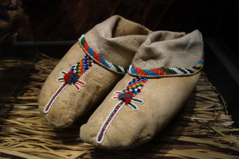 Keywords: Omaha moccasins, c. 1915 - Bata Shoe Museum - DSC00607.JPG en Exhibit in the Bata Shoe Museum Toronto Ontario Canada This item is old enough so that its design is in the public domain The museum permitted photography without restriction 2013-07-04 11 29 04 own Daderot cc-zero Moccasins in the Bata Shoe Museum Uploaded with UploadWizard Omaha people |