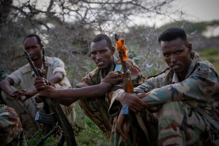 | Keywords: somalia amisom security operation military somali national army outdoor Soldiers of the Somali National Army (SNA) rest in the early morning 28 November 2012, following a night-time ground advance two nights previous as part of a joint SNA-AMISOM operation in an area south-west of the Somali capital Mogadishu. Troops from both the Ugandan and Burundian contingents of AMISOM and SNA units advanced on foot to the dense area of bush south of Elasha Biya, itself approx. 15km west of Mogadishu, which was hitherto occupied by the Al-Qaeda-affiliated terrorist group Al Shabaab and being used to launch attacks along the Afgooye corridor, the main thoroughfare west of the Somali capital. AU-UN IST PHOTO / STUART PRICE. Soldiers of the Somali National Army (SNA) rest in the early morning 28 November 2012, following a night-time ground advance two nights previous as part of a joint SNA-AMISOM operation in an area south-west of the Somali capital Mogadishu. Troops from both the Ugandan and Burundian contingents of AMISOM and SNA units advanced on foot to the dense area of bush south of Elasha Biya, itself approx. 15km west of Mogadishu, which was hitherto occupied by the Al-Qaeda-affiliated terrorist group Al Shabaab and being used to launch attacks along the Afgooye corridor, the main thoroughfare west of the Somali capital. AU-UN IST PHOTO / STUART PRICE. Soldiers of the Somali National Army (SNA) rest in the early morning 28 November 2012, following a night-time ground advance two nights previous as part of a joint SNA-AMISOM operation in an area south-west of the Somali capital Mogadishu. Troops from both the Ugandan and Burundian contingents of AMISOM and SNA units advanced on foot to the dense area of bush south of Elasha Biya, itself approx. 15km west of Mogadishu, which was hitherto occupied by the Al-Qaeda-affiliated terrorist group Al Shabaab and being used to launch attacks along the Afgooye corridor, the main thoroughfare west of the Somali capital. AU-UN IST PHOTO / STUART PRICE. army military security national somali operation somalia amisom |