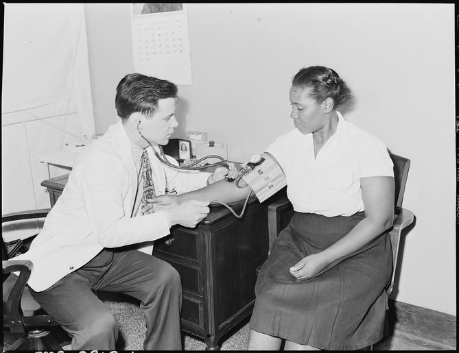 Keywords: One of general treatment rooms in clinic. U.S. Coal & Coke Company, U.S. ^30 & 31 Mines, Lynch, Harlan County, Kentucky. - NARA - 541410.tif Scope and content General notes 541410 Local identifier 245-MS-2918L Department of the Interior Solid Fuels Administration For War 04/19/1943 - 06/30/1947 NARA-Author Lee Russell 1903-1986 Photographer 2489414 <br /> Still Picture Records Section Special Media Archives Services Division NWCS-S National Archives at College Park 8601 Adelphi Road College Park MD 20740-6001 1946-09-19 Record group Record Group 245 Records of the Solid Fuels Administration for War 1937 - 1948 Record group ARC 572 Photographs of the Medical Survey of the Bituminous Coal Industry compiled 1946 - 1947 Series ARC 540230 File unit File unit ARC Variant control numbers NAIL Control Number NWDNS-245-MS-2918L yes Other versions <gallery> File One_of_general_treatment_rooms_in_clinic _U S _Coal_ _Coke_Company _U S _ 30_ _31_Mines _Lynch _Harlan_County _Kentucky _-_NARA_-_541410 tif tif File One_of_general_treatment_rooms_in_clinic _U S _Coal_ _Coke_Company _U S _ 30_ _31_Mines _Lynch _Harlan_County _Kentucky _-_NARA_-_541410 jpg jpg </gallery> NARA-cooperation PD-USGov Blood pressure measurement Coal mining in the United States NARA TIF images with categorized JPGs |