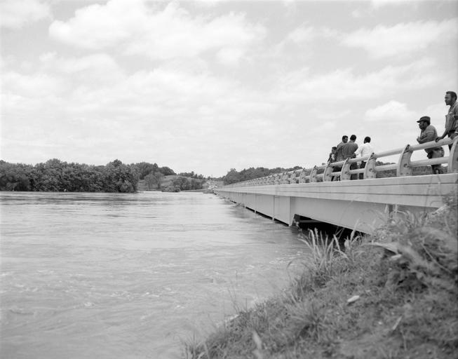 | Keywords: richmond va usa hurricane agnes hurricaneagnes virginia flood flooding natural disaster richmond va usa naturaldisasterrichmondvausa blackandwhite monochrome outdoor black and white Onlookers line the Rt. 522 James River Birdge in Maidens, Virginia, watching the flood waters from Hurricane Agnes receed. Located in Goochland County. No. 72-887, Virginia Governor's Negative Collection, Library of Virginia. Onlookers line the Rt. 522 James River Birdge in Maidens, Virginia, watching the flood waters from Hurricane Agnes receed. Located in Goochland County. No. 72-887, Virginia Governor's Negative Collection, Library of Virginia. |