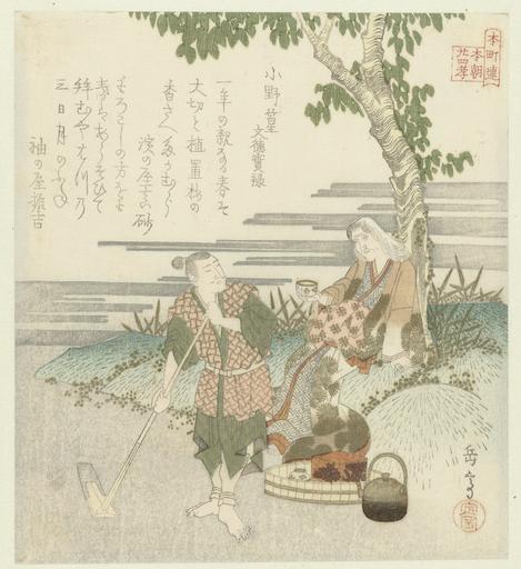 | Keywords: Ono no Takamura uit het Ware verhaal van Montoku-Rijksmuseum RP-P-1958-443.jpeg accession number RP-P-1958-443 Yashima Gakutei; Yashima Gakutei died 1868; Furiyoshi Sodenoya credit line GWToolset Rijksmuseum nl Oude vrouw zittende onder een boom en jonge man die het land bewerkt Het boek 'Montoku jitsuroku' is geschreven tussen 851 -879 in opdracht van keizer Montoku Ono no Takamura 802-852 weigerde met een schip mee te reizen omdat hij zo niet voor zijn ouders kon zorgen Hij werd verbannen naar het eiland Oki maar werd later vergeven omdat hij zijn ouders gehoorzaam was Met twee gedichten Label Line mentioned on object Yashima Gakutei 1786 - 1868 1820 - 1825 kleurenhoutsnede; lijnblok in zwart met kleurblokken; metaalpigmenten Collection prenten; Japan collectie blad Height mm 202 blad Width mm 184 exhibition history Institution Rijksmuseum paper object history Acquisition 1958 object type prent PD-US PD-old Data and photography rights All data and all images made available through the API are either in the public domain or are subject to a CC0 license https //www rijksmuseum nl/en/api/terms-and-conditions-of-use cc-zero place of creation Japan Forrer 392; Jap Cat III 204 http //www rijksmuseum nl/collectie/RP-P-1958-443 http //hdl handle net/10934/RM0001 COLLECT 45883 handle Ono no Takamura uit het Ware verhaal van Montoku Uploaded with GWToolset Rijksmuseum RP-P-1958-443 http //www rijksmuseum nl/media/assets/RP-P-1958-443 Images uploaded by Fæ Images from the Rijksmuseum Japanese 19th-century prints in the Rijksmuseum Amsterdam |