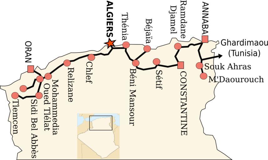 Keywords: Operating railway of Algeria.svg Operating railway lines of Algeria own 2007-12-29 Escondites Rail transport maps of Algeria Public transport maps of Algeria