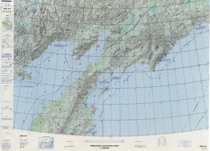 Keywords: Operational Navigation chart D-9, 5th edition.jpg en 1 1 000 000 scale Operational Navigation Chart Sheet D-9 5th edition Covers the U S S R Lambert Conformal Conic Projection txu-pclmaps-oclc-8322829_d_9 jpg onc/ Defense Mapping Agency Aerospace Center St Louis Air Force Station Mo 1983-01 Covers 56N to 63N 154E to 176E ONCs uploaded by Revent Operational Navigation Chart Old maps of USSR Maps of the Sea of Okhotsk Maps of the Bering Sea Maps of Kamchatka Maps with Lambert conformal conic projection JPG maps Operational Navigation Charts in the Perry-CastaƱeda Library PD-USGov |