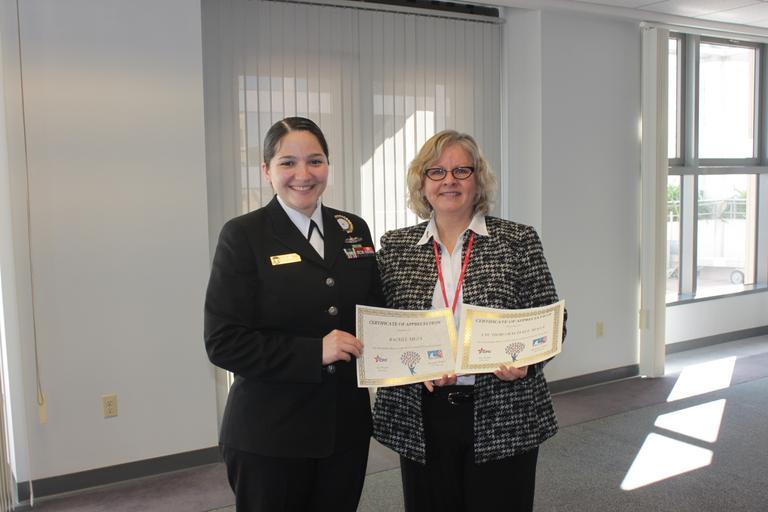 | Keywords: Operations Specialist 1st Class Rachael Meza recognized for Combined Federal Campaign participation 130130-N-QF596-003.jpg en Operations Specialist 1st Class Rachael Meza receives two awards for her leadership and participation during the Combined Federal Campaign from Francine Roby spokesperson for the Federal Executive Board The FEB is comprised of 176 federal entities across central and northern California 2013-01-30 Chief Petty Officer Grant Probst https //www dvidshub net/image/826883 130130-N-QF596-003 2013-02-04 14 09 OAKLAND CA US PD-USGov-Military-Navy Combined Federal Campaign Images from DoD uploaded by Fæ |