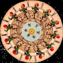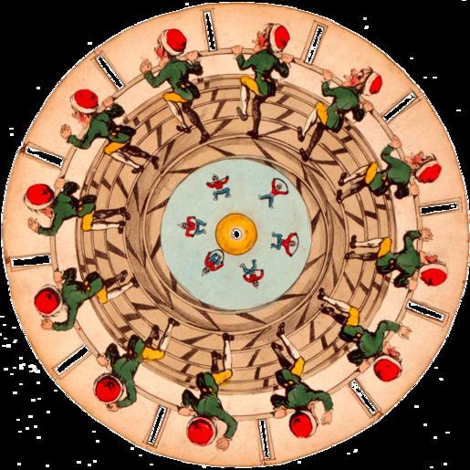 | Keywords: Optical illusion disc with man jumping rope and a man sticking out his tongue.gif Optical illusion disc which is spun displaying the illusion of motion of a man with black-face jumping rope in a circle at the center of the disc and of a man sticking out his tongue in a circle at the outer edge of the disc Part of McLean ™s Optical Illusions or Magic Panorama a boxed set of 12 discs Hand-colored lithograph LOC-image cph 3g08092 pnp 1833 author Published by Thomas McLean PD-retouched-user Racconish File Optical illusion disc with man jumping rope and a man sticking out his tongue cropped gif 1833 in England Phenakistoscope PD-old-100 |