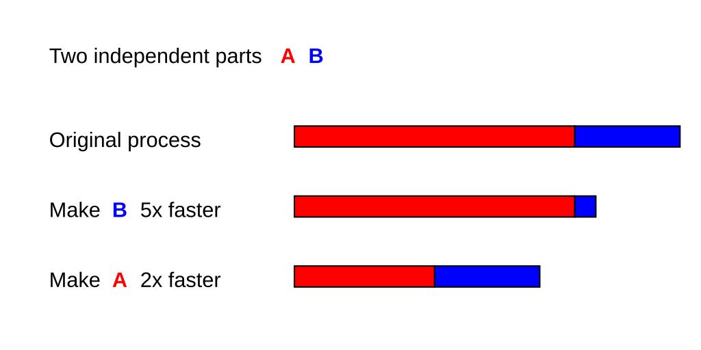 Keywords: Optimizing-different-parts.svg Assume that a task has two independent parts A and B B takes roughly 25 of the time of the whole computation By working very hard one may be able to make this part 5 times faster but this only reduces the time for the whole computation by a little In contrast one may need to perform less work to make part A be twice as fast This will make the computation much faster than by optimizing part B even though B got a bigger speed-up 5x versus 2x <br /> explanation taken from caption in wikipedia Amdahl's law own 2008-01-10 Gorivero Optimizing-different-parts png Optimizing-different-part-ar svg Optimizing-different-parts-ca svg Optimizing-different-part-es svg File Optymalizacja-roznych-czesci svg Optimizing-different-parts-tr svg other fields Inkscape 59648 1273 u MetrĂ³nomo text + S Translate Amdahl's law English text |