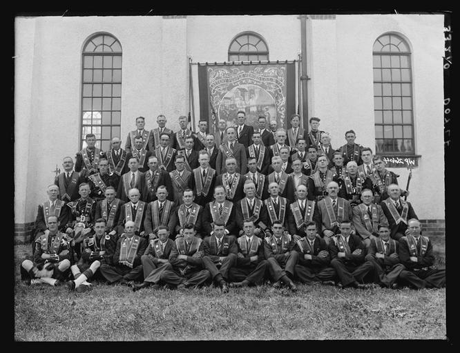 Keywords: loyal orange lodge loyalorangelodge doyle orange lodge orangelodge orange order orangeorder proni allison allison & co. photographers allisoncophotographers group portrait groupportrait genealogy ancestry ulster armagh northern ireland northernireland blackandwhite monochrome photo border team sport sport black and white Creator: H. Allison & Co. Photographers Date: c.1930 Original Format: Glass Plate Negative Description: Group portrait of members of a Loyal Orange Lodge. Commissioned by Doyle. PRONI Ref: D2886/W/Portrait/153 Copying and copyright: Please see www.proni.gov.uk/index/research_and_records_held/copying_... For Copy Orders, contact: Email: proni@dcalni.gov.uk For fees and charges see: www.proni.gov.uk/index/about_proni/are_there_any_fees_and... Creator: H. Allison & Co. Photographers Date: c.1930 Original Format: Glass Plate Negative Description: Group portrait of members of a Loyal Orange Lodge. Commissioned by Doyle. PRONI Ref: D2886/W/Portrait/153 Copying and copyright: Please see www.proni.gov.uk/index/research_and_records_held/copying_... For Copy Orders, contact: Email: proni@dcalni.gov.uk For fees and charges see: www.proni.gov.uk/index/about_proni/are_there_any_fees_and... |