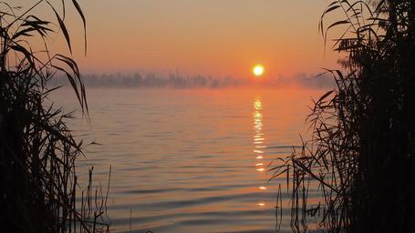 Keywords: orange sky dawn fog reflection sunset sunrise reed sky nature water landscape tranquility morning on the street naturally silhouette pond plants lake evening quiet calm