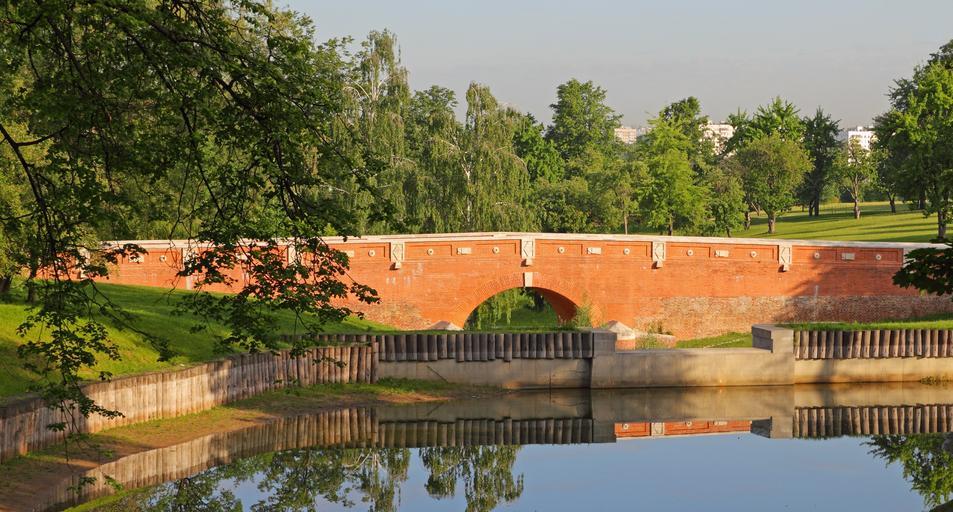 Keywords: Orangery Bridge Tsaritsyno Park Moscow Russia reflection river