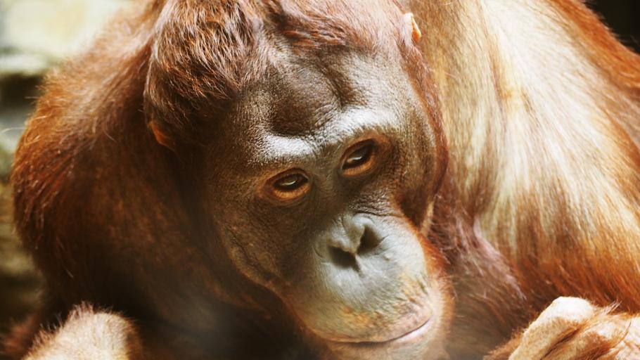 Keywords: orangutan monkey ape primate wildlife wild animal nature forest jungle mammal rainforest fur zoo face expression africa