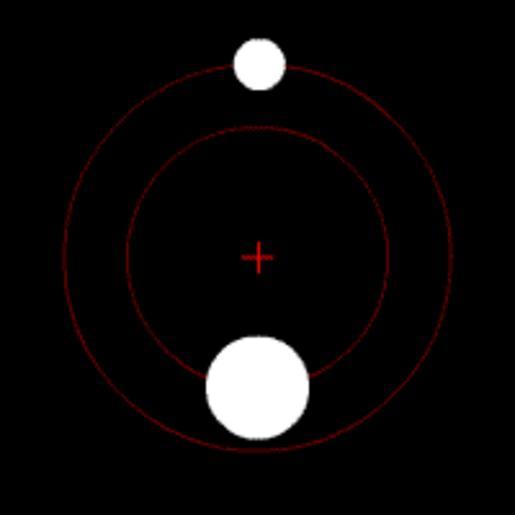 | Keywords: Orbit2.gif Two bodies with a slight difference in mass orbiting around a common barycenter red cross with circular orbits Dwa ciała o zbliżonych masach krążące wokół wspólnego barycentrum np Pluton i Charon Own User Zhatt Zhatt 100px 100px 100px 100px Animations of Kepler motions Two-body problem Barycenter animations Animations on black background Animated GIF |