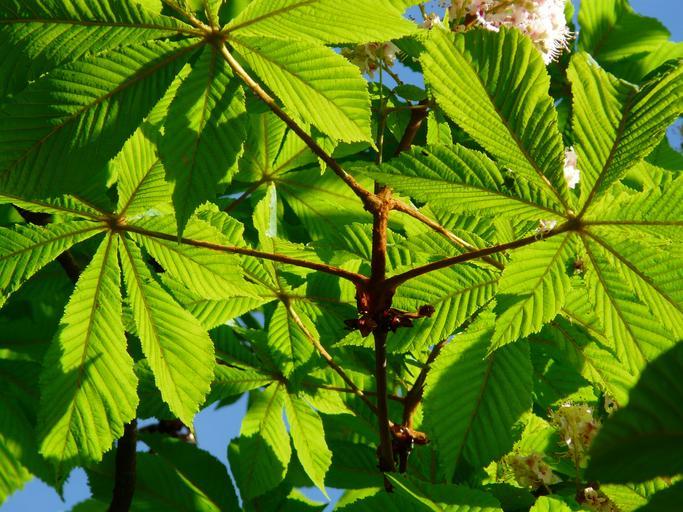 Keywords: ordinary rosskastanie leaves chestnut tree foliage aesthetic branches green bright sun light aesculus hippocastanum common rosskastanie white rosskastanie buckeye aesculus