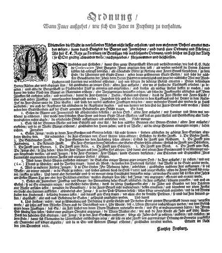 | Keywords: Ordnung wann Feuer aufgehet.jpg Ordnung / wann Feuer aufgehet / wie sich Ein Jeder in Freyburg zu verhalten Scan eines Originaldokuments 1692 Canzley Freyburg PD amtliches Werk PD-old-100 Freiburger Bächle De Wikisource book leaflet Firefighting in Freiburg im Breisgau History of firefighting in Germany Location not applicable |