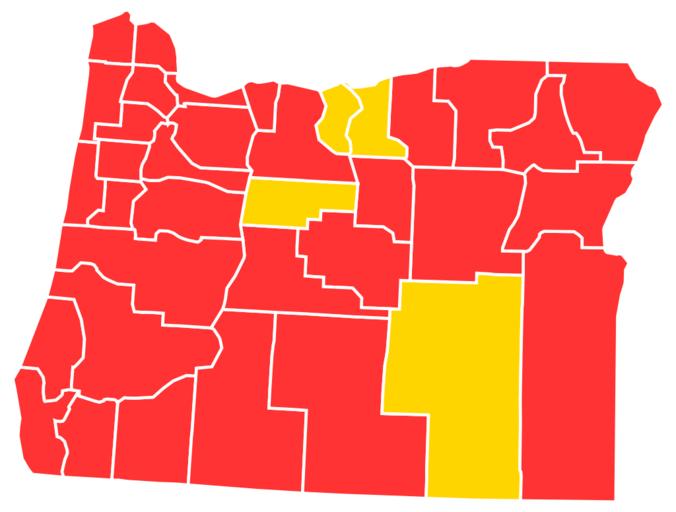 | Keywords: Oregon gubernatorial Republican primary results by county, 2016.svg en Results of the 2016 Republican gubernatorial primary in Oregon by county Red Bud Pierce yellow Allen Alley own MB298 2016-05-17 Oregon gubernatorial election maps 2016 elections in Oregon SVG maps of Oregon by MB298 Oregon Republican Party Bud Pierce Allen Alley Cc-zero | ||||