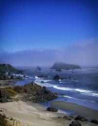 Keywords: oregon rocks boulders beach sea ocean water waves destinations nature outside shoreline coast fog