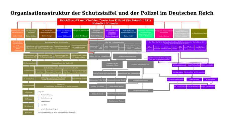 | Keywords: Organisationsstruktur der Schutzstaffel und der Polizei im Deutschen Reich.svg Darstellung der inneren Vernetzung zwischen der SS und der Polizei Przedstawienie powiązań pomiędzy strukturami SS i Policji 2004-08-17 and 2010-05-09 - PNG original SVG version by Krzychu025 SS Nazi Germany |
