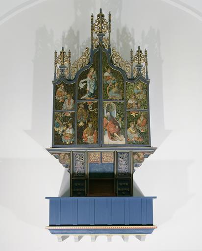 | Keywords: Orgel van gepolychromeerd eikenhout uit de Nederlands Hervormde Kerk te Scheemda Rijksmuseum BK-NM-8184.jpeg Artwork Creator Johannes Emedensis LangSwitch Organ Orgel Ucfirst Anonymous i18n/painting LangSwitch Organ with oak case and painted shutters from the Dutch Reformed Church in Scheemda The pipes are divided into seven groups On the inner right shutter are depicted The Nativity and The Adoration of the Shepherds On the inner left shutter is depicted The Adoration of the Magi The exterior of the shutters shows The Tree of Jesse These paintings were formerly attributed as 'manner of Jan Swart van Groningen' Orgel van gepolychromeerd eikenhout uit de Nederlands Hervormde Kerk te Scheemda De pijpenbundels zijn in zeven groepen verdeeld Op de rechter deur aan de binnenzijde zijn voorstellingeen van De Geboorte en De Aanbidding der Herders aangebracht Op de linkerdeur aan de binnenzijde De Aanbidding der Koningen De buitenzijde is beschilderd met De boom van Jesse Deze schildering waren in het verleden toegeschreven als 'trant van Jan Swart van Groningen' ~ 1526 oak and oil oak panel cm 645 300 Institution Rijksmuseum Amsterdam BK-NM-8184 Johannes Emedensis and Germany LangSwitch Organ from the Dutch Reformed Church at Scheemda with depiction of Jesse Tree Orgel van gepolychromeerd eikenhout uit de Nederlands Hervormde Kerk te Scheemda ~ 1526 wood oak oil 29671 Anonymous Northern Netherlands Orgel met beschilderde luiken century 16 1500-1599 Oil on panel orgel-van-gepolychromeerd-eikenhout-uit-de-nederlands-hervormde-kerk-te-scheemda 100007921 Johannis Emedensis Orgel van gepolychromeerd eikenhout uit de Nederlands Hervormde Kerk te Scheemda Other date ~ 1526 oak object history by 1874 Nederlands Hervormde Kerk Scheemda by 1896 J Verwer Leeuwarden ProvenanceEvent 1896 purchase LangSwitch das the le het Rijksmuseum Amsterdam Amsterdam exhibition history credit line LangSwitch Purchased by the Rijksmuseum Amsterdam with support of the Aangekocht door het Rijksmuseum Amsterdam met steun van de Vereniging Rembrandt Johannes Emedensis signature unknown ~ accession number BK-NM-8184 place of creation Northern Netherlands / i18n/or Germany www rijksmuseum nl http //www rijksmuseum nl Home http //www rijksmuseum nl/collectie/BK-NM-8184 Info Orgel thans opgesteld in het Rijksmuseum - Scheemda - 20195361 - RCE jpg Photo dating from the early 20th century PD-US PD-old Data and photography rights All data and all images made available through the API are either in the public domain or are subject to a CC0 license https //www rijksmuseum nl/en/api/terms-and-conditions-of-use cc-zero Uploaded with GWToolset Orgel van gepolychromeerd eikenhout uit de Nederlands Hervormde Kerk te Scheemda Rijksmuseum BK-NM-8184 http //www rijksmuseum nl/media/assets/BK-NM-8184 DEFAULTSORT Anonymous 1526 Images uploaded by Fæ Images from the Rijksmuseum Dutch Renaissance paintings in the Rijksmuseum Amsterdam Anonymous 1526 German paintings in the Rijksmuseum Amsterdam Anonymous 1526 Johannes Emedensis 1526 Furniture in the Rijksmuseum Amsterdam Rijksmuseum Amsterdam in the 2000s 2000 Rijksmuseum Amsterdam - Great Hall Gothic organs Nederlands Hervormde Kerk Scheemda |