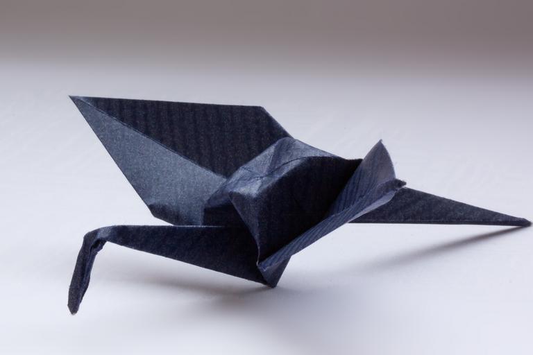 Keywords: origami art of paper folding fold 3 dimensional object crane traditionally geometric body structure paper texture blue