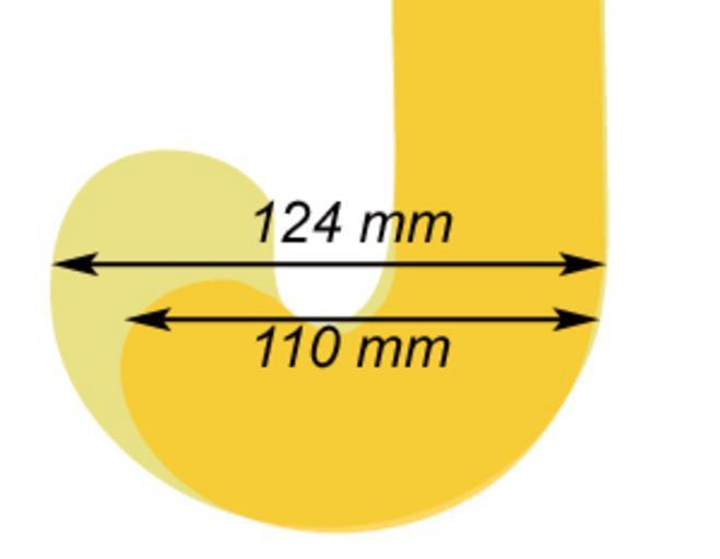 | Keywords: Original 'Hook' and 'Shortie'.jpg Comparison of horizontal head length of original 'Hook' from outline drawing made from one purchased in 1984 by the author with the horizontal length of a 'one piece' a stick commonly termed a short head or 'shortie' Author Martin Conlon 2006-09-23 own assumed Martin ZigZag Field hockey sticks |