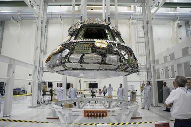 Keywords: Operations Checkout Building NASA Kennedy Space Center Orion Crew Module Set Connection Heat Shield