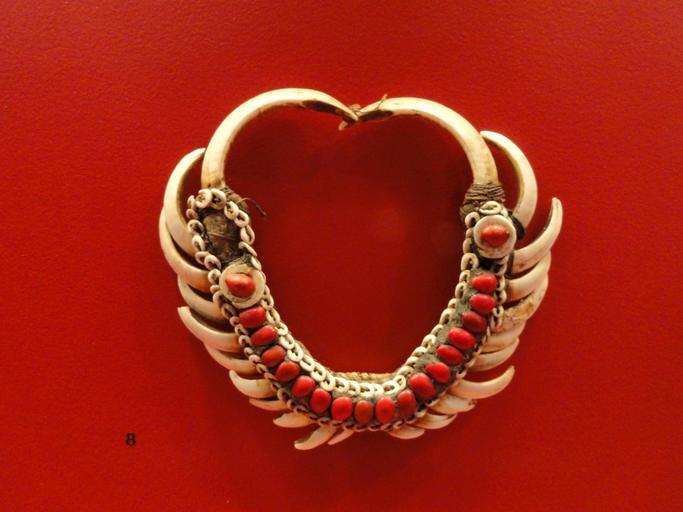 | Keywords: Ornament, boar tusks, nassa shells, conus shell rings, red seeds, Papua New Guinea, 1916 - Staatlichen Museums für Völkerkunde München - DSC08320.JPG Exhibit in the Oceanic collection of the Staatlichen Museums für Völkerkunde München Maximilianstraße 42 Munich Germany Ornament made of boar tusks nassa shells conus shell rings red seeds Papua New Guinea 1916 I took this photograph 2011-05-03 03 56 03 Daderot Public domain Dauerausstellung Ozeanien des Staatlichen Museums für Völkerkunde München |