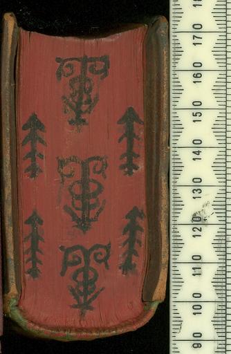 Keywords: Orthodox Eastern Church -- Liturgy -- --Moskva - 7167, i.e. 1659.- - - Tail edge (1111a7).jpg Style Centre and cornerpiece Religious miscellaneous; Caption Tail edge; Colour Unspecified; Edge Red Gilt Black exhibition history Decorative Technique Tooled in blind Tooled in gold; Cover Material Leather unspecified Handwritten note on leave 2 some bits lost April 6th 1663 a Russian Almanach of Saints Bevelled wooden boards Traces of 2 clasps catching on to upper cover Combmarbled endleaves 2 Ink ms shelf marks u;203 7 HHL spine damamaged Sewn on 3 douoble sewing supports Design on upper and lower covers differs Upper cover probably tooled in poor quality gold or silver which has oxidised Lower cover is blind tooled object history Text 1559; Moscow; Sloane Hans 1660-1753 object type Cc-zero place of creation Binding Russia place of discovery Unspecified British Library image http //www bl uk/catalogues/bookbindings/LargeImage aspx RecordId 020-000017685 ImageId ImageId 56667 Copyright BL Orthodox Eastern Church -- Liturgy -- Moskva 7167 i e 1659 Uploaded with GWToolset Orthodox Eastern Church -- Liturgy -- Moskva 7167 i e 1659 - Tail edge 1111a7 http //www webarchive org uk/bldatasets/bindings/1111a7tail jpg Bookbinding 17th-century bookbinding British Library Bookbindings |