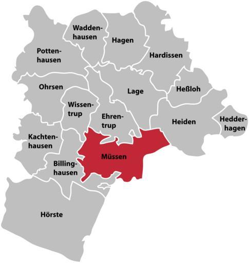 Keywords: Ortsteile Lage (Lippe) Müssen.svg Ortsteile der Stadt Lage Lage von Müssen own 2010-03-28 de User DaBroMfld based on work of field PD-release Maps of Lage Lippe
