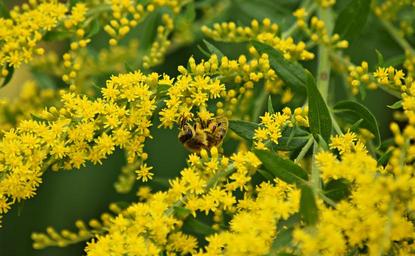 Keywords: osa pollination nature sunny insects summer garden bee macro pollen grass flower blooms green vegetation yellow nectar