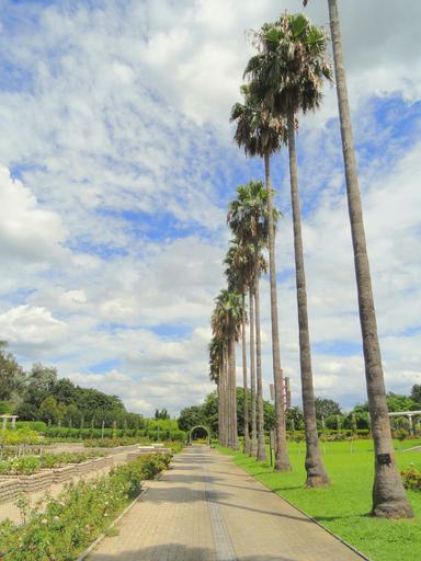 Keywords: osaka japan landscape scenic sky clouds palms palm trees trees botanical garden plants flowers grass sidewalk walkway plaza nature outside summer spring