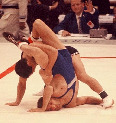 Keywords: Osamu Watanabe vs Raul Romero 1964.jpg Osamu Watanabe left vs Raúl Romero freestyle wrestling 1964 Olympics http //www gettyimages co uk/detail/news-photo/osamu-watanabe-of-japan-and-raul-romero-of-argentina-news-photo/180580837 1964-10-12 Unknown Asahi Shinbun PD-Japan Osamu Watanabe wrestler |