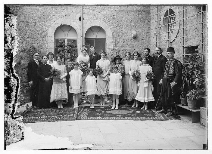 | Keywords: OscarHeizer1.jpg  en Wedding of Eric and Edith Matson Image probably taken in the courtyard of the American Colony building Jerusalem Back row left to right Lewis Larsson Swedish consul unidentified clergyman Edith Larsson Oscar Heizer's daughter holding bouquet Lily Yantiss Edith Matson Eric Matson Tanetta Vester Mrs Heizer Anna Grace Vester Heizer's daughter Lars Lind Oscar Heizer American Consul and Heizer's kavass Front row Effie Yantiss in front of Lars Lind Frieda Vester Dorothy Yantiss and Louise Vester Source Annotated copy of photograph in P P Matson Collection file 2013-06-26 13 19 57 http //www loc gov/pictures/search/ q Oscar 20Heizer United States Government PD-USGov Uploaded with UploadWizard Oscar S Heizer Lewis Larsson |