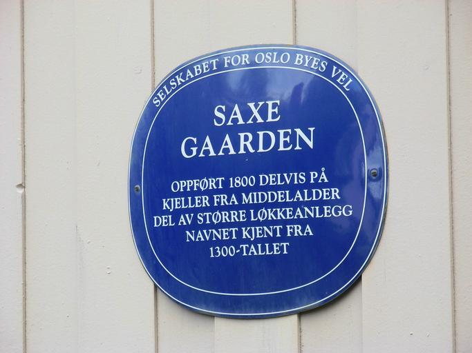 Keywords: Oslo Byes vel kulturhistorisk skilt.JPG Oslo Byes vel kulturhistorisk skilt 86164 own 2007-07-15 Helge Høifødt Blue plaques in Oslo Saxegården