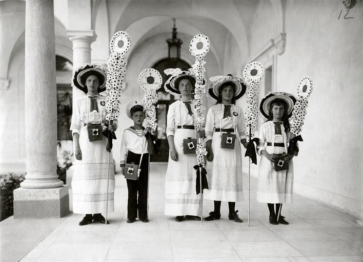 Keywords: OTMAA on the White Flower Festival.jpg en The imperial children on the White Flower Festival Livadia Palace ru Ца ские дети в День Белого Цветка Ливадийский дво ец http //ganinayama ru/photo-video/foto-czarskoj-semii/czarskaya-semya html http //simeon mk ua/ p 1660 Julian 1912-05-03 1912-04-20 Romanov family or retinue PD-RusEmpire Tatiana Nikolaevna of Russia in family photographs Alexei Nikolaievich of Russia in family photographs Olga Nikolaevna of Russia in family photographs Maria Nikolaevna of Russia in family photographs Anastasia Nikolaevna of Russia in family photographs Italian patio in Livadiya palace OTMA Category 1910s in fashion Fashion in 1912 |
