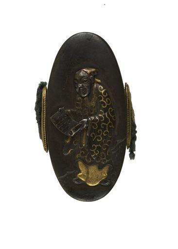 | Keywords: Otsuki Mitsuoki - Kashira with a Chinese Scholar - Walters 511073.jpg A Chinese scholar is shown holding a scroll This is part of a set with Walters 51 1072 between 1766 1834 late Edo shibuichi gold silver cm 3 3 accession number 51 1073 22363 William T / Henry Walters Collection Baltimore date and mode of acquisition unknown Walters Art Museum Henry Walters Acquired by William T or Henry Walters none place of origin Osaka Japan Walters Art Museum license Tosogu Japanese sword fittings in the Walters Art Museum Otsuki Mitsuoki Media contributed by the Walters Art Museum needs category review |