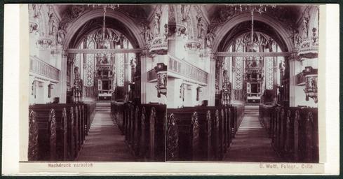 | Keywords: Otto Wolff Stereoskopie, Celle, Stadtkirche Ostseite 1912, Bildseite Blick in Richtung Altar und Fürstengruft, Kopie.jpg Bildseite der 1912 von dem Celler Fotografen Otto Wolff gefertigten Aufnahme aus der Stadtkirche St Marien in Celle Diese handgefertigte Kopie einer Stereoskopie rückseitig handschriftlich betitelt Stadtkirche Celle Ostseite 1912 zeigt eine seinerzeitige Ansicht mit Blick in Richtung des Altars und der Fürstengruft Das Bilddokument wurde freundlicherweise von Ilse Paul zur Verfügung gestellt um es als Digitalisat allen Menschen nachhaltig zur Verfügung zu stellen Scan einer vom Original angefertigten Replik Bernd Schwabe in Hannover 2013-10-15 08 50 55 Otto Wolff <gallery> File Otto Wolff Stereoskopie Celle Stadtkirche Ostseite 1912 Rückseite Blick in Richtung Altar und Fürstengruft Kopie jpg Bildseite </gallery> PD-old Documents by Ilse Paul Otto Wolff photographer Interiors of Stadtkirche St Marien Celle 1912 in Lower Saxony Stereo cards of Celle |
