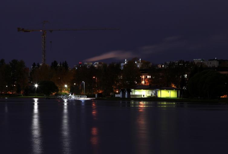 Keywords: oulu finland city cities urban skyline bay lake harbor water reflections lights architecture silhouettes buildings shoreline nature outside
