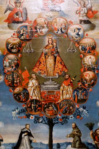| Keywords: Our Lady of Characato, by Cipriano de Toledo y Gutierrez, Cuzco, Peru, 1771, oil on canvas, detail 1 - Blanton Museum of Art - Austin, Texas - DSC08128.jpg en Exhibit in the Blanton Museum of Art - Austin Texas USA This work is old enough so that it is in the public domain 2015-11-15 16 38 38 own Daderot other versions PD-old-100 cc-zero Our Lady of Characato by Cipriano de Toledo y GutiƩrrez | ||||