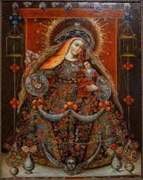 | Keywords: Our Lady of Mercy, called 'The Pilgrim', Enthroned, artist unknown, Cuzco, Peru, 1730s, oil on canvas - Blanton Museum of Art - Austin, Texas - DSC08142.jpg en Exhibit in the Blanton Museum of Art - Austin Texas USA This work is old enough so that it is in the public domain 2015-11-15 16 40 29 own Daderot other versions PD-old-100 cc-zero Cuzco School paintings in the Blanton Museum of Art | ||||
