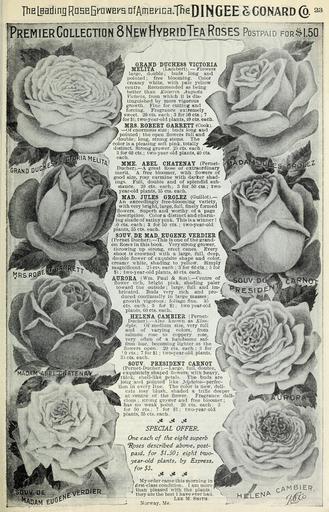 | Keywords: Our new guide to rose culture (16570541292).jpg Color a distinct and charm- <br> ing shade of satiny pink This is a winner i <br> cts each ; 3 for 50 cts ; two-year-old <br> plants 35 cts each <br> SOUV DE MAD EUGENE VERDIER <br> Fernet Ducher ” This is one of the grand- <br> est Roses in this book Very strong grower <br> tiirowing up strong erect canes Every <br> shoot is crowned with a large full deep <br> double flower of exquisite shape and color <br> creamy white shading to yellow Simply <br> magnificent 25 ct« each ; 3 for 60 cts ; 5 for <br> 1 ; two-year-old plants 40 cts each <br> AURORA Wm Paul Son ” Centre of <br> flower rich bright pink shading paler <br> toward the outside; large full and im-/ Ipfeg <br> bricated Buds very rich and pro- 1 <br> duced continually in large masses; <br> growth vigorous; foliage fine 35 <br> cts each; 3 for Si; two year-old <br> plants 60 cts each <br> HELENA CAMBIER Pernet- <br> Ducher ” Also known as Klon- <br> dyke Of medium size very tull <br> and of varying colors from <br> salmon rose to coppery rose <br> very often of a handsome saf- <br> fron hue becoming lighter as the - <br> flowers open 20 cts each; 3 for <br> cts ; 7 for fl ; two-year-old plants I <br> 35 cts each <br> SOUV PRESIDENT CARNOT <br> Pernet-Ducher ” Large full double <br> exquisitely shaped flowers with heavy <br> thick shell-like petals The buds are <br> long and pointed like Isiphetos ” perfec- \ <br> tion in every line The color is new deli- <br> cate rosy blush shaded a trifle deeper <br> at centre of the flower Fragrance deli <br> cious ; strong grower and free bloomer; <br> has no weak point 20 cts each ; 3 <br> for 50 cts ; 7 for 1 ; two-year-old <br> plants 35 cts each <br> t X <br> SPECIAL OFFER <br> One each of the eight superb <br> ~-~\ 'J ses described abcn e post- I <br> pa id for 1 50; eight t wo- <br> year-old plants by Express <br> for 3 <br> t t <br> k My order came this morning in <br> drst-class condition I am more <br> than pleased with the plants; <br> they are the best 1 have ever had <br> Lee M Smith <br> Norway Me 43875610 149643 77861 Page 23 Text http //www biodiversitylibrary org/page/43875610 1891 10 5962/bhl title 77861 Dingee Conard Co ; Henry G Gilbert Nursery and Seed Trade Catalog Collection Biodiversity Heritage Library Our new guide to rose culture 1900 Garden Stories Bulbs Plants Catalogs Dingee Conard Co Flowers Nurseries Horticulture Nursery stock Roses Seeds Trade catalogs Vegetables U S Department of Agriculture National Agricultural Library bhl page 43875610 dc identifier http //biodiversitylibrary org/page/43875610 bhlGardenStories Hybrid Tea Roses BHLinbloom bulbs plants dingee conard co nurseries horticulture u s department of agriculture national agricultural library bhlgardenstories hybrid tea roses bhlinbloom Information field Flickr posted date ISOdate 2015-02-18 Check categories 2015 August 24 CC-BY-2 0 BioDivLibrary https //flickr com/photos/61021753 N02/16570541292 2015-08-24 03 53 10 cc-by-2 0 PD-old-70-1923 Our new guide to rose culture 1891 Photos uploaded from Flickr by Fæ using a script |