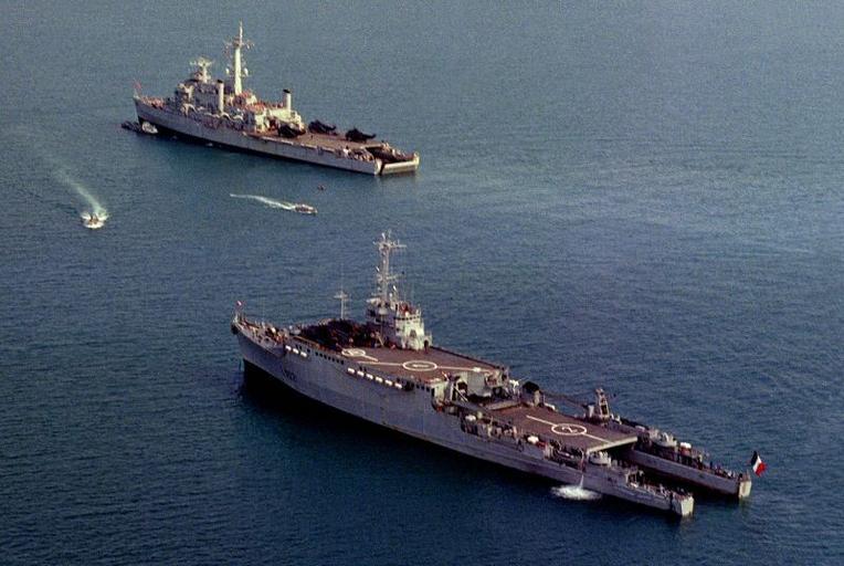 Keywords: Ouragan HMS-Intrepid DN-SC-90-08863rc.jpg Original description <br> A port quarter view of the French landing ship dock FS OURAGAN L-9021 foreground its stern gate open for landing craft operations and the British amphibious transport dock HMS INTREPID L-11 sitting offshore during the NATO Southern Region exercise DRAGON HAMMER '90 Camera Operator PH1 AW RAYMOND H TURNER II Date Shot 3 May 1990 ID DNSC9008863 Source resized and croped hi-res picture http //www dodmedia osd mil/Assets/1990/Navy/DN-SC-90-08863 JPG from http //www dodmedia osd mil PD-USN International groups of naval ships HMS Intrepid L11 Ouragan L9021 Stern gates Dragon-Hammer90 |