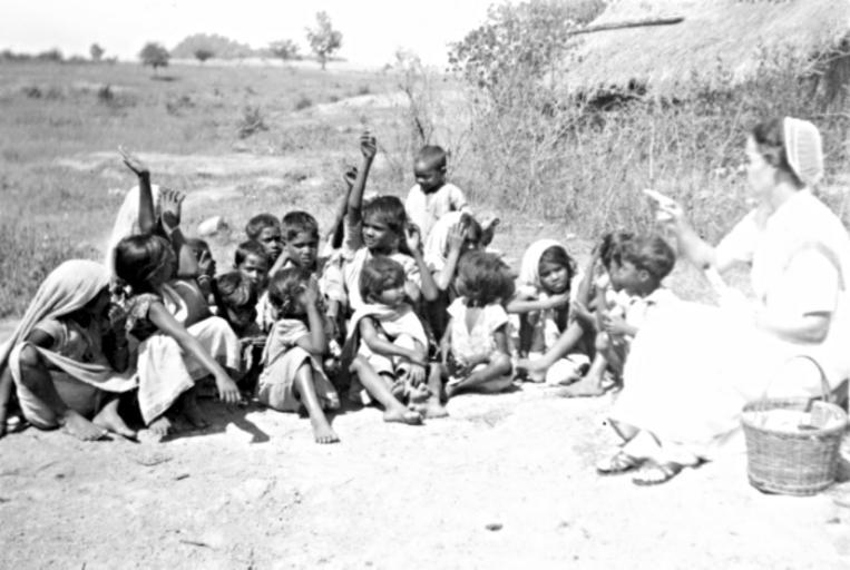 | Keywords: india mennonite board of missions mennoniteboardofmissions boys boy girls girl child children mrs. allen shirk mrsallenshirk hindi hindi children hindichildren bible class bibleclass blackandwhite monochrome outdoor black and white Caption: Mrs. Allen Shirk teaches the Hindi children the Bible. Even Indian boys and girls know the answers! Citation: Mennonite Board of Missions Photographs, 1898-1967. IV-10-007.2 Box 4 Folder 12. Mennonite Church USA Archives - Goshen. Goshen, Indiana. Caption: Mrs. Allen Shirk teaches the Hindi children the Bible. Even Indian boys and girls know the answers! Citation: Mennonite Board of Missions Photographs, 1898-1967. IV-10-007.2 Box 4 Folder 12. Mennonite Church USA Archives - Goshen. Goshen, Indiana. |