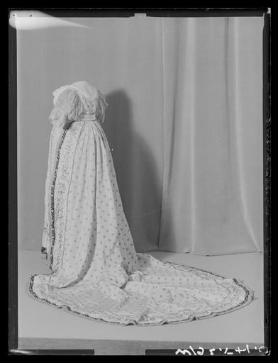 Keywords: Överklädning, s k robe de cour, till Sofia Albertinas (1753-1829) hovdräkt - Livrustkammaren - 71166.tif LSH artwork sv Överklädning av ljusblå taft bestående av släp och liv Släp sytt av åtta våder varav fyra större utgående från livet och fyra mindre skarvar i sidan och längs med släpets nederkant Liv med gallerärmar av vit kräpp och gallerverk av ljusblå taft På de lodräta banden fastsatt runda glasstenar omgärdade av tvinnad metalltråd och paljetter På de vertikala banden är stenarna något större och har flera lager tvinnad metalltråd men inga paljetter Hela tyget är rikligt dekorerad med slipade spegel- och glasstenar inramade av tvinnad metalltråd och gul silketråd Runt släpets kanter löper bred bård av cremefärgat kräpp med inslag av siden med glasstenar och paljetter samt ett kulört broderi av silke föreställandes en blomstergirland med röda vallmo med stjälk i tre gröna nyanser blåklint med gulaktig stjälk samt ax med kontur av tunn tvinnad metalltråd och korn av ofärgade glasstenar Bården avslutas nedtill med två band av svart och röd sammet Det övre svarta bandet är upptill kantat av en rad med tättsittande paljetter Dekor därunder i form av omväxlande ax samt tre i pryamidform placerade runda glasstenar med ram av tvinnad metalltråd Glasstenar med tvinnad metalltråd markerar också gränsen mellan det svarta och röda sammetsbandet samt släpets nederkant Däremellan påsydda paljetter i ett zick-zackmönster med tvinnad metalltråd i form av små blommor Släpets nederdel och bård är fodrat med ljusblå taft På släpets insida är fastsatt flera hällor av tyg original caption 1809 size mm 2100 släp size mm 2220 mitt bak size mm 2250 släp size mm 225 ärm LRK Sofia Albertina av Sverige Livrustkammaren nya basutställning 2018 LRK bas 2018 Livrustkammaren place of origin original filename LN_E05564 68027 inventory number LRK 31434 71166 CC0 Överklädning s k robe de cour till Sofia Albertinas 1753-1829 hovdräkt - Livrustkammaren - 71166-negative tif <gallery caption Different images of same object > File Överklädning s k robe de cour till Sofia Albertinas 1753-1829 hovdräkt - Livrustkammaren - 4876 tif </gallery> <gallery caption Related objects > File Kjol till prinsessan Sofia Albertinas hovdräkt robe de cour - Livrustkammaren - 512 tif LRK 20772 File Pumps av cremefärgat siden - Livrustkammaren - 60405 tif LRK 27285 </gallery> Dresses Media contributed by LSH dim-with multiple size templates Media contributed by LSH 2016-12 |