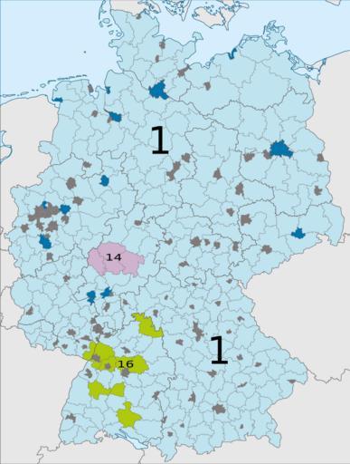 | Keywords: Overview Maps of Municipalities in Germany.svg à bersicht über den Einbau der Gemeindelagepläne in Deutschland siehe de Wikipedia Projekt Landkreiskarten/Statistik own <br/> district borders based upon File Landkreise 08-2008 svg by NordNordWest 2008-09 Benutzer TUBS Released into the public domain by the author Other fields A + Maps Locator maps of municipalities in multiple German states | ||||