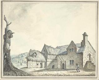 | Keywords: Owen Glyndwr's Prison.png en Owen Glyndwr's Prison Carrog in 1794 2015-05-05 http //digidol llgc org uk/METS/ING00001/ingleviewer item 76 locale cy John Ingleby 1794 other versions 52 981881 -3 322147 Thomas Pennant wrote in about 1776 that The prison where Owen confined his captives was not far from his house in the parish of Llansanfraid Glyndwrdwy and the place is to this day called ˜ ™Carchardy Owen Glyndwrdwy ™ ™ Some remains are still to be seen near the church which form part of a habitable house It consists of a room 13 feet squareand ten and a half high The sides consist of three horizontal beams with upright planks not four inches asunder mortised into them In these are groves in the bottom as if there had been cross bars or grates The roof is exceedingly strong composed of strong planks almost contiguous It seems as if there had been two stories;but the upper part at present is evidently modern <ref>Pennant T 1784 ˜ ˜Tour in Wales ™ ™ Bridge Books reprint Wrexham 1990 Vol 1 387-8</ref> In 1794 John Ingleby was employed to make a watercolour record of the building which stood just to the S E of the church and overlooked the river Dee The building which was thatched and has some timber studding had also a Gothic arched window and Gothic arched doors There seems to be evidence for an outer stair leading to a first floor hall which suggests that that parts of the building could well have been cotemporary with Owen Glyndwr The site of the building was on the modern Glyndwr Terrace Custom license marker 2015 05 05 User Llywelyn2000/NLW/Credit Template PD-old-100 Uploaded with UploadWizard Carrog Owain Glyndŵr Corwen |
