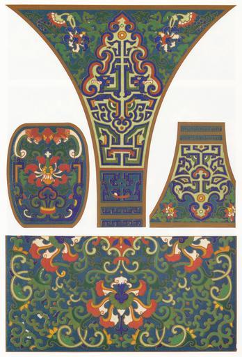 | Keywords: Owen Jones - Examples of Chinese Ornament - 1867 - plate 032 - 300ppi.jpg 031 XXXII 32 033 From a square Vase in cloisonné enamel The outline of this vase is very elegant and the composition of the ornament contrasting with the curved lines is very fine The pattern on the lower half of the plate is from the inside of the lip Aristeas Compressed version Owen Jones - Examples of Chinese Ornament - 1867 - plate 032 png PNG PD-old-100-1923 Cloisonné of China Vases of China Floral patterns Floral designs in China Fret patterns |