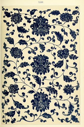 | Keywords: Owen Jones - Examples of Chinese Ornament - 1867 - plate 023.png 022 XXIII 23 024 From a Bottle of blue and white china; a very fine example of symmetrical arrangement it is also interesting as showing the limit of shade and relief in the representation of flowers ”a limit which the Chinese constantly reach but never exceed PD-old-100-1923 Floral designs in China Floral patterns Blue and white porcelain Ceramic bottles | ||||