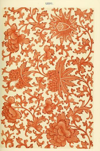 | Keywords: Owen Jones - Examples of Chinese Ornament - 1867 - plate 076.png 075 LXXVI 76 077 From a painted china Vase A composition on the continuous-stem principle PD-old-100-1923 Porcelain of China Vases of China Floral designs in China Red and white porcelain |