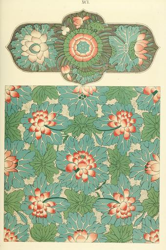 | Keywords: Owen Jones - Examples of Chinese Ornament - 1867 - plate 091.png 090 XCI 91 092 From painted china The upper subject from a small Tray is remarkable for the way in which the flowers fill up the space PD-old-100-1923 Porcelain of China Floral designs in China Floral patterns |